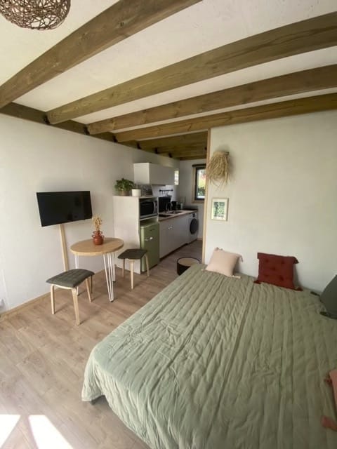 Une bonne luminosité peut faire toute la différence dans un espace réduit. Assurez-vous que votre studio de jardin dispose de grandes fenêtres ou d’une baie vitrée pour laisser entrer un maximum de lumière naturelle. Des stores ou rideaux légers permettront de réguler la luminosité tout en conservant la clarté de la pièce.
